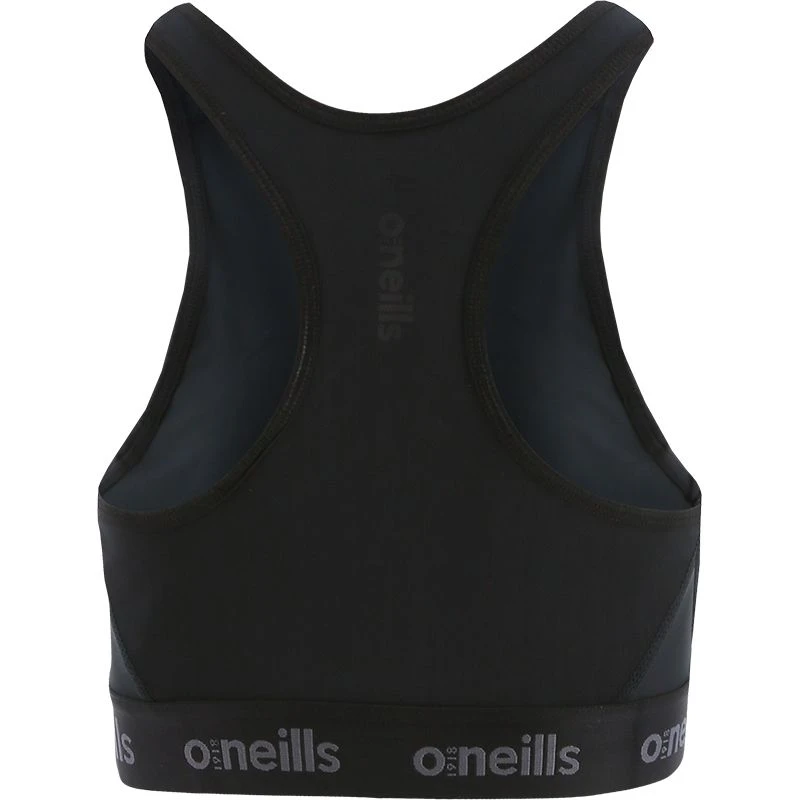 Women’s sports bra is made from a hard-wearing yet breathable fabric with a double layered front panel for optimum support. Featuring a mesh back panel in classic racer-style and deep elasticated band with O’Neills branding.
